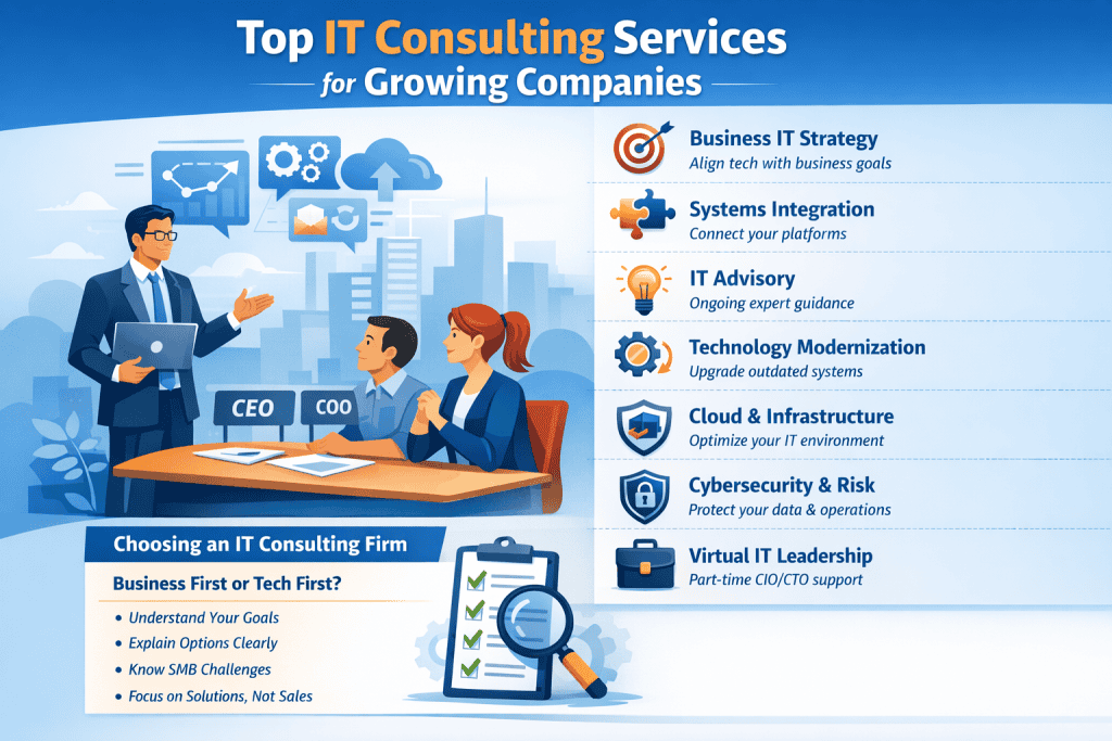 The best IT consulting firms help leadership make better decisions, reduce friction, and build systems that scale with the company—not ahead of it.